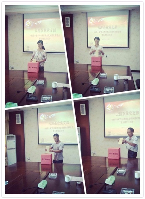 2017年7月19日,云游茶業(yè)黨支部召開(kāi)“兩學(xué)一做”學(xué)習(xí)教育常態(tài)化制度化推進(jìn)會(huì)及主題黨日活動(dòng),向?yàn)?zāi)區(qū)人民愛(ài)心募捐作為會(huì)議的一項(xiàng)重要議程進(jìn)行。在公司董事長(zhǎng)楊正武、黨支部書(shū)記楊應(yīng)輝的指導(dǎo)下,黨員們積極參與、慷慨解囊,共募集愛(ài)心款1萬(wàn)元,全部轉(zhuǎn)賬給長(zhǎng)沙市望城區(qū)雷鋒慈善會(huì),用于災(zāi)區(qū)人民災(zāi)后重建工作。